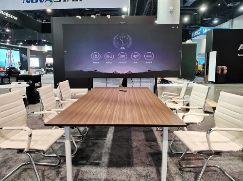 受全球疫情的持續(xù)影響,遠(yuǎn)程辦公、視頻會(huì)議、在線學(xué)習(xí)等概念已深深滲入人們的工作、學(xué)習(xí)與生活之中,全球市場(chǎng)對(duì)交互顯示產(chǎn)品的需求持續(xù)旺盛。本次展會(huì)上,邁銳光電智慧會(huì)議一體機(jī)憑借多功能智能集成一體化設(shè)計(jì)理念賺足了眼球。產(chǎn)品內(nèi)置頂級(jí)揚(yáng)聲設(shè)備和安卓智能系統(tǒng),集高清顯示、無(wú)線投屏、遠(yuǎn)程會(huì)議等多功能于一體,投屏?xí)r支持四分屏同時(shí)顯示,數(shù)據(jù)對(duì)比清晰直觀,讓開會(huì)演示與信息交流的體驗(yàn)更逼真,“刷新”了參展觀眾對(duì)LED顯示屏的認(rèn)知。